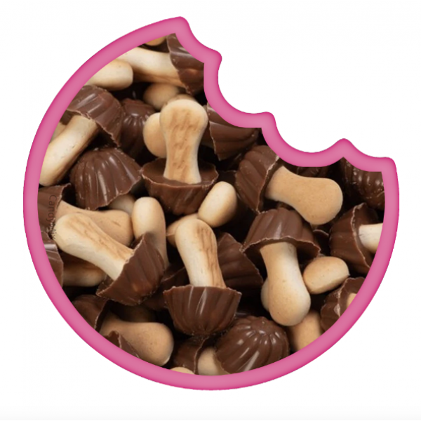 Ingrédients : Enrobage 60 % : sucre, huile végétale entièrement hydrogénée (palme), lactosérum (lait) en poudre, cacao en poudre à teneur réduite en matières grasses (12 %), émulsifiant (lécithine de tournesol, polyricinoléate de polyglycérol), arômes (vanilline).