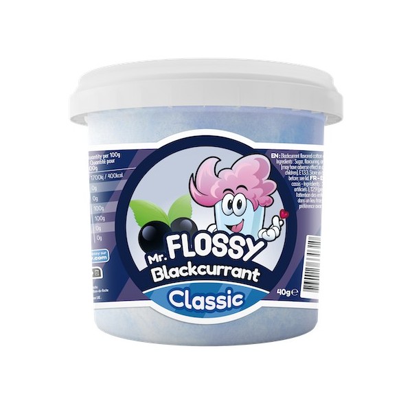 Découvrez la barbe à papa cassis Mr Flossy : une gourmandise au goût intense et fruité, qui fera fondre les amateurs de douceurs. Idéale pour les fans de saveurs originales ! 100% plaisir, 100% cassis !