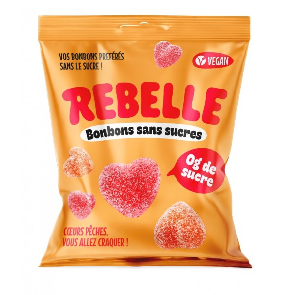 Rebelle Bonbons Coeurs Pêche 50 Gr