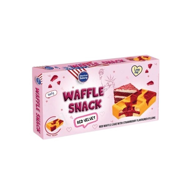 Waffle Snack Red Velvet 135 g : une gaufre moelleuse au goût red velvet, douce et légèrement cacaotée. Un snack gourmand et tendance, parfait pour une pause sucrée. Idéal pour les amateurs de gaufres originales et saveurs américaines.